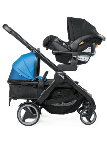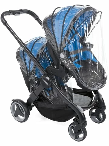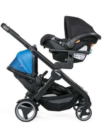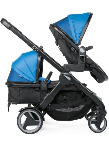 Der CHICCO Geschwisterwagen FULLY TWIN ist vielseitig, bequem und für jedes Terrain geeignet. Kugellager, Stoßdämpfer und Gummireifen an allen vier Rädern sorgen stets für leichtes und angenehmes Fahren.Die Sitzeinheiten lassen sich im Kinderwagen-Modus verwenden. Sind die Kleinen dann etwas größer, sorgen die ebenso im Sportwagen-Modus nutzbaren Sitzeinheiten dafür, dass sie – ob mit Blick zu den Eltern oder in Fahrtrichtung – ihre Umwelt aktiv erkunden können. Rückenlehne, Sitzeinheit und Fußstütze sind mehrfach verstellbar. So ist der Wagen von Geburt an bis zu einem Alter von ungefähr 36 Monaten ein zuverlässiger Helfer.Dank der mitgelieferten, festen Bodenplatten und dem praktischen Tragegriff können die Kinderwagenaufsätze auch jederzeit mit den schlafenden Kindern vom Gestell abgenommen und bequem auf dem Boden abgestellt werden.Der Wagen ist mit verschiedenen Eigenschaften versehen, die die Handhabung besonders angenehm machen: Ein Pedal an der Hinterachse erleichtert dem Schiebenden das Überwinden von Bordsteinkanten und kleinen Hindernissen, und Schutzbleche an den Hinterrädern halten den Schmutz vom unten sitzenden Kind fern. Der durchgehende vierfach verstellbare Schieber mit Kunstlederdetails ermöglicht auch unterschiedlich großen Eltern komfortables Schieben. Lieferumfang:– 1 x Geschwisterwagen-Gestell FULLY TWIN– 2 x Sportsitz, der jeweils in einen ab Geburt nutzbaren Kinderwagenaufsatz verwandelt werden kann– 1 x Polster für Mittelsteg– 1 x Schulterpolster– 1 x Regenschutz– 1 x geräumiger Einhängekorb– 1 x Schutzbleche an den Hinterrädern– 2 x feste Bodenplatte (um Sitzfläche in Kinderwagenaufsatz umzuwandeln)– 2 x gesteppter Innenbezug (um Sitzfläche in Kinderwagenaufsatz umzuwandeln) Details:Highlights:– höhenverstellbarer Schieber– vielseitig nutzbar– flexible Vollgummiräder– schwenkbare Vorderräder– Liegeposition (180 °) Kinderwagen:– umsetzbare Sitzeinheit– Radart: Vollgummiräder– Verstellbarkeit der Rückenlehne: stufenlos per Band– Verstellbarkeit der Fußstütze: 2-stufig– Federung: Stoßdämpfer an allen 4 Rädern– Bremsart: Feststellbremse– Gurtsystem: 5-Punkt-Gurt– Verdeck abnehmbar– Schutzbügel abnehmbar– Belastbarkeit: bis zu 15 kg pro Kind Maße:Gestell:– Maße aufgebaut: ca. 87-106 x 63 x 94-108 cm (L x B x H)– Maße zusammengeklappt mit Aufsatz (nur mit einem Sitz zusammenzuklappen): ca. 39 x 63 x 82 cm (L x B x H)– Maße zusammengeklappt nur Gestell: ca. 28,5 x 63 x 70 cm (L x B x H)– Gewicht gesamt: ca. 16,5 kg– Schieberhöhe: ca. 94-104 cm– Raddurchmesser vorne: ca. 18,5 cm– Raddurchmesser hinten: ca. 24 cm Kinderwagen:– Außenmaße Kinderwagenaufsatz: ca. 86 x 43 x 57 cm (L x B x H)– Maße Liegefläche: ca. 72 x 29 cm (L x B)– Gewicht pro Aufsatz: ca. 3,2 kg Sportwagen:– Maße Sitzfläche: ca. 31 x 23 (L x B)– Länge der Rückenlehne: ca. 46 cmHöhe der Sitzfläche vom Boden aus:– obere Sitzeinheit: ca. 80 cm– untere Sitzeinheit: ca. 30 cm Material:– Gestell: Aluminium– Bezug: 100% Polyester– Füllung: 100% Polyester —Pflegehinweis—– mit feuchtem Tuch abwischen Hinweise:Bitte beachten Sie, dass die abgebildete Babyschale nicht im Lieferumfang enthalten ist.Die Detailbilder zeigend den Wagen in einer anderen Farbe. Geliefert wird der Wagen in der Farbe, die in der Artikelbezeichnung angegeben ist.Altersempfehlung:ab 6 Monat(e) bis 36 Monat(e)