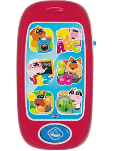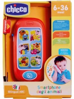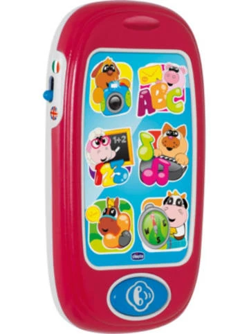 Ein bilinguales Smartphone, designt nach dem Vorbild des Smartphones der Eltern. Die sechs süßen Tiersymbole auf dem großen Bildschirm begeistern Ihr Kind dafür, erste Worte in Deutsch und Englisch zu erlernen.Details:– Lerntelefon von CHICCO– auf Deutsch und Englisch– 24 verschiedene Kinderreime, Lieder, Tiergeräusche und Musik– 6 Tasten mit leuchtenden LEDs– eine Anruftaste zum imitieren von TelefongesprächenMaße: ca. 7 x 14 x 2 cm (B x L x H)Material: KunststoffBatterien 1 – Batteriemenge, benötigt: 3– Batteriemodell: Micro (AAA)– Batterietyp: LR03– Batteriemenge, enthalten: 3Unsere Entsorgungshinweise zu Batterien und Elektrogeräten finden Sie auf https://www.mytoys.de/c/entsorgungshinweise.htmlAltersempfehlung:ab 6 Monat(e) bis 36 Monat(e)ACHTUNG: Benutzung unter unmittelbarer Aufsicht von Erwachsenen
