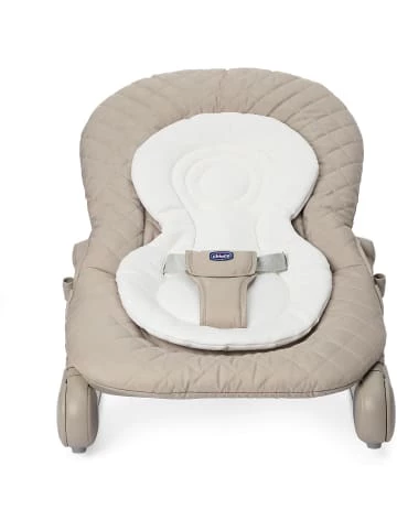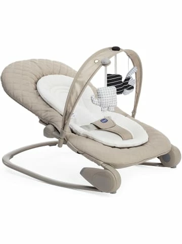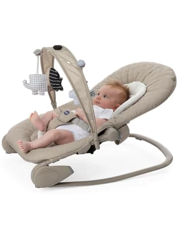 Die CHICCO Babywippe „Hoopla“ überzeugt mit jeder Menge Wipp- und Spielspaß für die Kleinen. Der Spielbogen bietet dank farbenfroher Spielfiguren und rasselnder Elemente, die sich jederzeit an jede beliebige Stelle schieben lassen, sodass ständig neue Spielkonstellationen entstehen, große Unterhaltung für die kleinen Familienmitglieder. Die gut gepolsterte Liegefläche der Wippe sorgt für weichen Sitzkomfort.Dank des Sitzverkleinerers können auch schon die ganz Kleinen von Geburt an in der Wippe Platz nehmen. Durch den Gurt der Wippe sitzen sie zudem stets sicher. Die Wippe lässt sich ganz einfach fixieren, und die Rückenlehne in vier verschiedene Positionen neigen. Besonders praktisch: Die Tragegriffe der Wippe ermöglichen den Eltern leichtes Umstellen.Ab zwölf Monaten nimmt man die Gurte ab und kann Hoopla als ersten Sessel für das Kind nutzen.Wird die Wippe nicht benötigt, lässt sie sich kompakt zusammenfalten und verstauen. Der Bezug ist abnehmbar und waschbar.Details:– dank Sitzverkleinerer von Geburt an nutzbar– kann zu einem kleinen Sessel umgebaut werden– Bezug abnehm- und waschbar– Wippe lässt sich bei Nichtgebrauch platzsparend zusammenfalten– Belastbarkeit: bis zu 18 kgMaße: ca. 47 x 46-62 x 78 cm (B x H x L)Material: Textil, KunststoffAltersempfehlung:ab 0 Monat(e) bis 9 Monat(e)