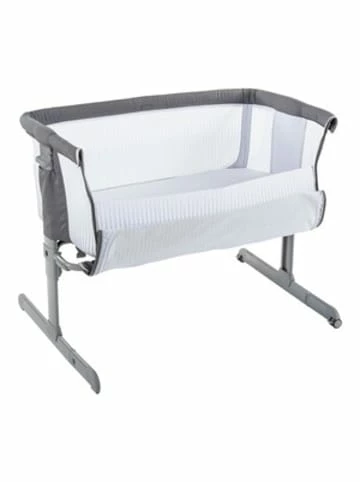 Mit dem Beistellbett Next2me Air von Chicco genießen die Kleinsten die Nähe zu den Eltern. Große Netzfenster sorgen für eine optimale Belüftung. Lieferumfang: Beistellbett Next2me von Chicco inkl. Matratze, Gurtsystem, Transporttasche Material: Aluminium, Textil Verwendung: Beistellbett, Babybett, Stubenwagen Belastbarkeit: bis 9 kg Maße: 94(L) x 69(B) x 66-81(H) cm Das Beistellbett Next2me Air von Chicco lässt sich mit zwei Gurten unkompliziert am Elternbett befestigen. Die Standfüße des Designs können zur Seite geklappt werden. So lässt es sich näher an das Bett der Eltern stellen. Die Höhe der Liegefläche ist sechsfach verstellbar. So kann das Modell mit zahlreichen verschiedenen Betttypen kombiniert werden. Wird das Design mit geschlossenem Seitenteil verwendet, kann es auch frei im Raum stehend genutzt werden. Zwei Rollen erlauben einen unkomplizierten Wechsel zwischen verschiedenen Räumen. Die großen Netzfenster des Betts lassen die Luft bestmöglich zirkulieren. Zugleich bieten sie den Erwachsenen einen uneingeschränkten Blick auf das Baby. Die atmungsaktive Matratze des Next2me Air sorgt für optimalen Schlafkomfort. Bei Bedarf kann die Liegefläche des Betts geneigt werden. Die halbschräge Position erleichtert verschnupften Kindern die Atmung und wirkt sich positiv auf die Verdauung aus. Praktisch: Der Bezug des Betts ist waschbar. So ist das Beistellbett stets hygienisch einwandfrei einsatzbereit.Länge: 0,1 cmBreite: 94 cmHöhe: 66 cmPflegehinweise:* Bleichen: Nicht bleichen* Professionelle Textilpflege: Nicht trockenreinigen* Waschen: Handwäsche maximale Temperatur 40°* Bügeln: Nicht bügeln* Trocknen: Nicht im Tumbler trocknenBelastbar bis: 9 kg