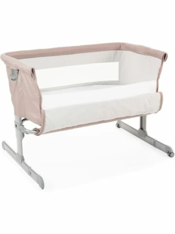 Ein Nest für gemeinsames Träumen und entspanntes Stillen – das Chicco Next2me, das Durch ein einfaches und sicheres Befestigungssystem wird das Beistellbettchen Chicco Next2me fest mit dem Elternbett verbunden, so dass Ihr kleiner Liebling ab Geburt bis zu einem Alter von ca. 6 Monaten (9 kg Körpergewicht) ganz in Ihrer Nähe schlafen kann. Die 6-fache Höhenverstellung dient dabei der optimalen Anpassung an nahezu alle Arten von Betten. Die abwinkelbaren Standfüße ermöglichen auch eine Befestigung an Kastenbetten. Die atmungsaktive Matratze ist fest gepolstert und eben für den sicheren Schlaf Ihres Babys. Auch das Netzfenster gewährleistet Luftzirkulation. Die Nestform sowie die reduzierten Maße vermitteln dem Neugeborenen dabei ein geschütztes und geborgenes Gefühl. Chicco Next2me verfügt über eine Neigungsfunktion, durch die das Baby in halbschräger Position schlafen kann. Diese Lagerung erleichtert ihm das Atmen, wenn es Schnupfen hat, und unterstützt die Verdauung.Mit 2 Rädern zum leichteren Umstellen von einem Zimmer ins andere. Inklusive einer praktischen Transporttasche. Der Bezug ist abnehmbar und waschbar. B 69 cm – L 94 cm – H 66-81 cmMaterial: 94% Polyester, 6% Baumwolle—Pflegehinweise—– Handwäsche– Nicht bleichen– Nicht bügeln– Nicht im Wäschetrockner trocknenAltersempfehlung:ab 0 Monat(e) bis 6 Monat(e)ACHTUNG: Die maximale Tragkraft beträgt 9kg.