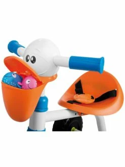 Das unterhaltsame Dreirad mit lustigem Pelikangesicht und bunten Pedalen bietet Spaß und schult die Motorik.Von Beginn an fährt es sich dank der Lenkradsicherung, die ein Feststellen oder Bewegen des Rades ermöglicht, einfach. Auch die Sicherheitsgurte sorgen für ein sicheres Fortbewegen und unterstützen beim Fahrspaß.Im Schnabel des Pelikans können kleine Schätze transportiert werden. Die Schubstange kann nach Bedarf abmontiert werden und die breiten Fußtritte bieten sicheren Halt beim Strampeln.+++Details++++ Alu-Dreirad mit PlastikreifenAltersempfehlung:ab 18 Monat(e) bis 36 Monat(e)ACHTUNG: Benutzung unter unmittelbarer Aufsicht von Erwachsenen Nicht für Kinder unter 18 Monaten geeignet.