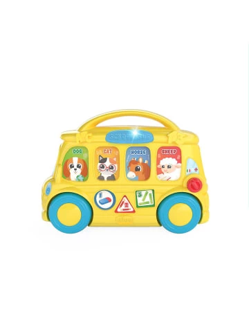 Der interaktive zweisprachige Schulbus (Deutsch & Englisch) zum Spielen und Lernen von CHICCO begeistert mit Kinderreimen und Interessantem zu den Themen Schule und Tiere. Das elektronische Spielzeug verfügt über Lichter und mehr als 35 Lieder, Sätze und Melodien zu Schulgegenständen, Farben, Zahlen und Tiergeräuschen. Das bunte Fahrzeug kommt mit Freilauf zum fröhlichen Herumschieben.Details:– sieben Tasten zum Aktivieren von Lichtern und Geräuschen– praktischer Griff zum Tragen– Drei-Positionen-Schalter zur Auswahl der Sprache (Deutsch/Englisch/Off)– Lerninhalte: Kinderreime, Tiere, Schule– mehr als 35 Lieder, Sätze und MelodienMaterial: KunststoffEs werden 2 x Micro (AAA) Batterien () benötigt. Diese sind im Lieferumfang enthalten.Unsere Entsorgungshinweise zu Batterien und Elektrogeräten findest du auf https://www.mytoys.de/c/entsorgungshinweise.htmlAltersempfehlung:ab 9 Monat(e) bis 36 Monat(e)