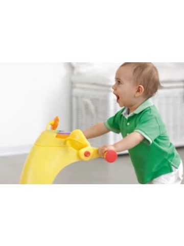 Die Lauflernhilfe von Chicco Activity-Center Chicco 123 eignet sich wunderbar für die ersten Gehversuche Ihres Kindes. Dank der Umbaumöglichkeit, kann die Lauflernhilfe von 6 Monaten bis ca. 2 Jahre genutzt werden.Begleitet von lustigen Melodien, Lichtelementen und mechanischen Spieleinheiten, regt die integrierte Spielkonsole zum Laufen mit quietschfidelem Kinderlachen an. Die 3 in 1 Funktion bietet dank Laufgerät (6m+), Lauflernhilfe für die ersten Gehversuche (9m+) und Rutscher zur Bewegungsanregung (18m+) Lernspaß für lange Zeit.Der Griff lässt sich 2-fach in der Höhe verstellen. Der ergonomische Sitz bietet lässt sich leicht im vorderen Aufbewahrungsfach verstauen.Besonderheiten:– mit Licht-, Sound- und mechanischen Modulen– 2-fache Höhenverstellung– SicherheitsstopperDetails:– Maße aufgebaut (L/B/H): 92 x 45 x 60 cm– Gewicht: 7 kgZugelassen bis zu einem Gewicht des Kindes von ca. 12kg+++BITTE BEACHTEN+++Es werden 2 x Batterien (Mignon/AA/LR06) benötigt, welche nicht im Lieferumfang enthalten sind. Am besten gleich mit bestellen.Achtung, die Detailbilder zeigen die Lauflernhilfe in einer anderen Farbe. Im Lieferumfang befindet sich nur die Farbe grün.Unsere Entsorgungshinweise zu Batterien und Elektrogeräten finden Sie auf http://www.mytoys.de/c/entsorgungshinweise.htmlAltersempfehlung:ab 6 Monat(e) bis 24 Monat(e)