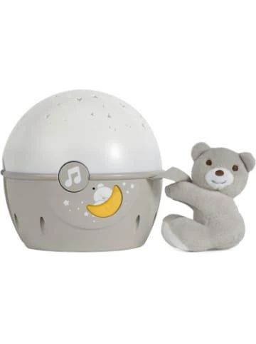 Der CHICCO Projektor „Next2Stars“ kommt mit einem abnehmbaren, super kuscheligen Plüsch-Teddy und begeistert mit drei unterschiedlichen Lichteffekten. Sobald das Baby unruhig wird und weint, reagiert der Geräuschaktivierungs-Sensor mit Licht und angenehmer Muisk. Das innovative Modell kommt praktischerweise gleich mit einem integrierten Befestigungs-System zum einfachen Anschrauben ans Bettchen.Details:– Projektor „Next2Stars“ mit integriertem Befestigungssystem– einfach am Baby-Bett anzuschrauben– Befestigungssystem passend für Babybett-Stangen bis zu 38 mm Durchmesser– Projektion mit automatischem Farbwechsel– 3 verschiedene Lichteffekte: Projektor-Licht, Relax-Licht und Nachtlicht– ca. 30 Minuten Musik und Projektionen– Geräuschaktivierungs-Sensor: aktiviert Licht und Musik, wenn das Baby weint– mit zuckersüßem Plüsch-Teddy, der abnehmbar und waschbar ist– mit LautstärkenreglerHinweis:Es werden 3 x AA-Batterien (Typ: LR06) benötigt. Diese sind nicht im Lieferumfang enthalten.Unsere Entsorgungshinweise zu Batterien und Elektrogeräten finden Sie auf http://www.mytoys.de/c/entsorgungshinweise.htmlAltersempfehlung:ab 0 Jahr(e) bis 3 Jahr(e)